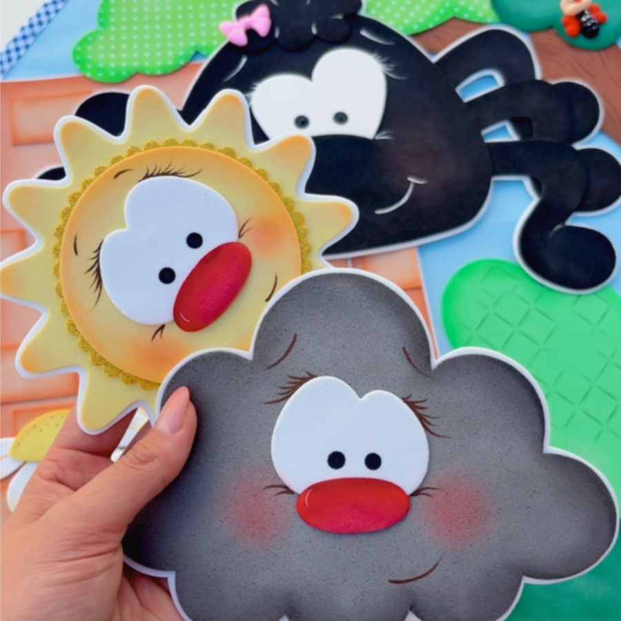 A apostila contém moldes para montagem do Avental Musical ” Dona Aranha…”