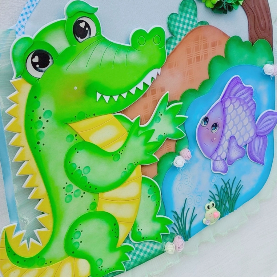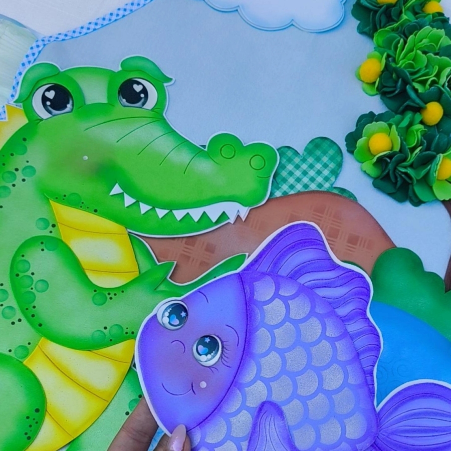 A apostila contém moldes para montagem do Avental Musical ” O jacaré foi passear lá na lagoa”