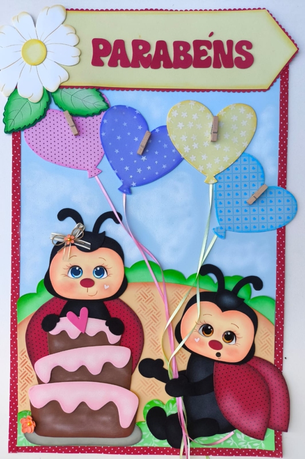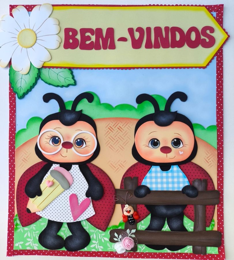 Apostila em PDF com moldes para a montagem de um lindo kit sala de aula com 6 painéis no tema Joaninhas