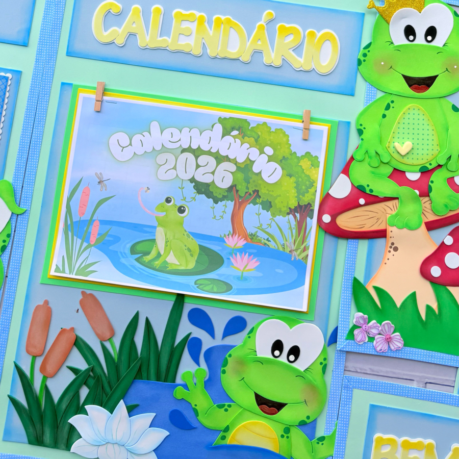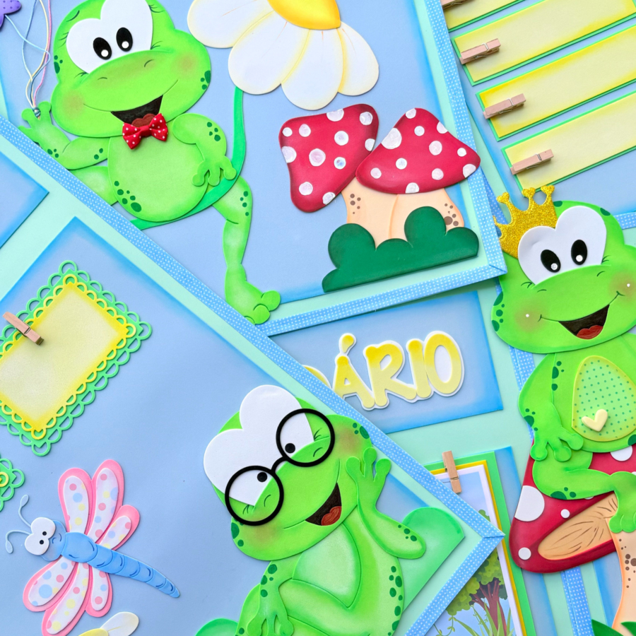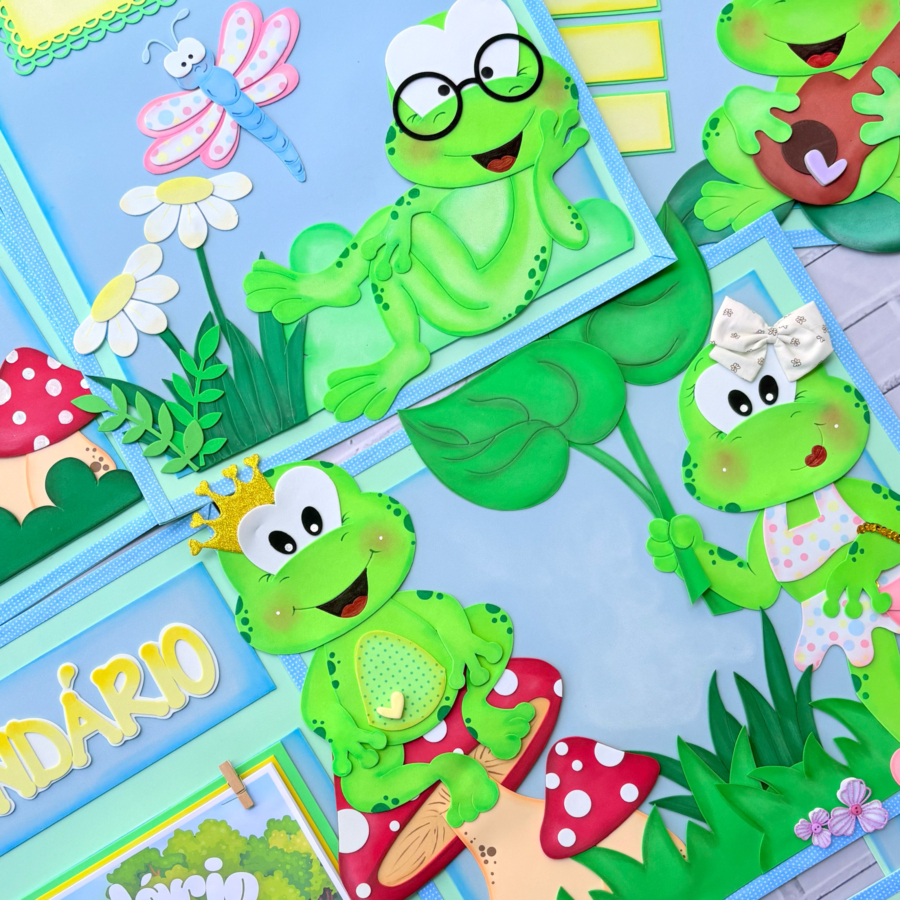 Apostila em PDF com moldes para a montagem de um lindo kit sala de aula com 7 painéis no tema Sapinhos