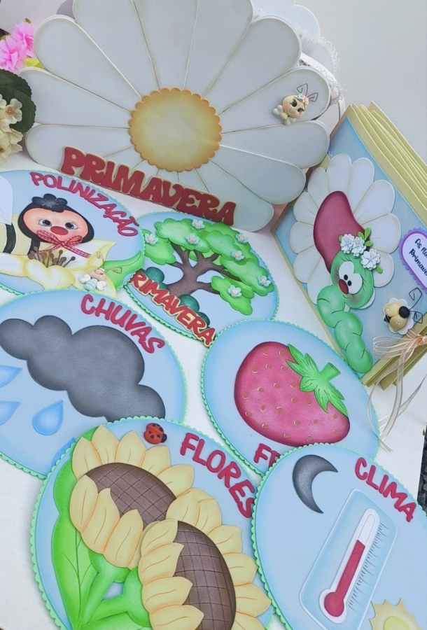A apostila contém moldes para montagem de dois recursos pedagógicos para trabalhar a chegada da primavera